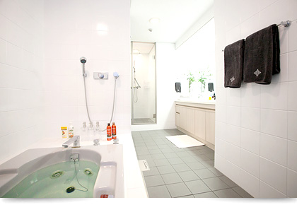 能在浴室舒緩?一整天的疲累。可望見窗外神?港的夜景,感受頂級的露天浴池氣氛。
