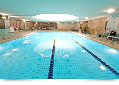 天井からは自然光が差し込み、ゆったりとした時間が流れるプールには、サウナやミストサウナ、ジャグジーも完備しております。日ごろのストレスの発散やトレーニング後のクールダウンにお勧めです。またレッスンプログラムやしっかりと泳ぎたい方向けにレーンもご用意しており、スキルアップの場としても十分ご活用頂けます。